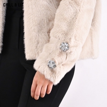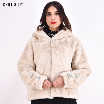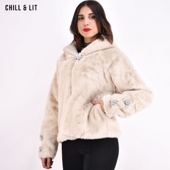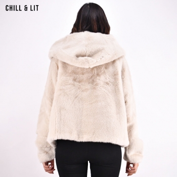 Veste Courte en Fourrure Femme Doublure en Cuir Avec Fermeture en Crochet, Capuche Hyper Tendance cet Hiver. Le Mannequin Porte La Taille S et Mesure 1m78.