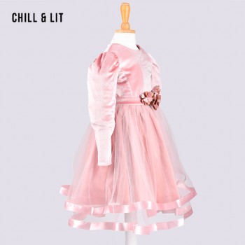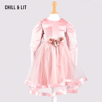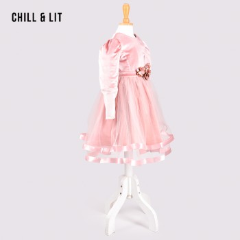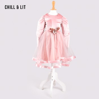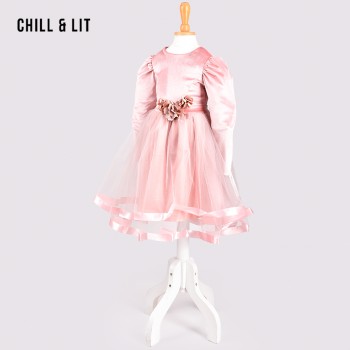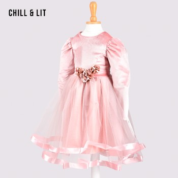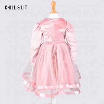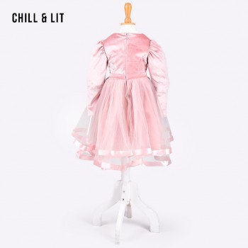 Robe Longue Fillette Manches Longues Robe avec Doublure Spécial Aïd. Le Mannequin Porte La taille 4an.