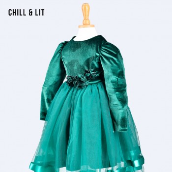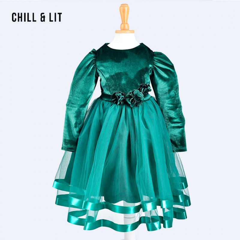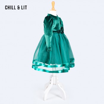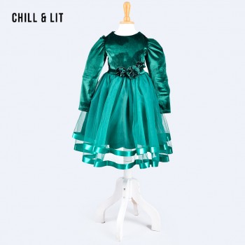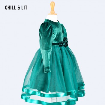 Robe Longue Fillette Manches Longues Robe avec Doublure Spécial Aïd. Le Mannequin Porte La taille 4an.