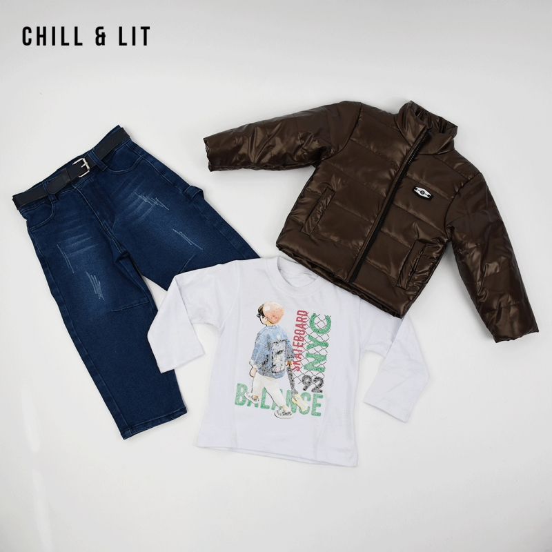 Ensemble Garçonnet 3 Pcs Veste + Pull à Manches Longues + Pantalon Jean Baggy Avec Ceinture. Très Tendances . L'ensemble sur La Photo est La taille 1An.