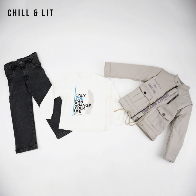 Ensemble Garçonnet 3 Pcs Veste avec deux poches à l'avant + Pull à Manches Longues + Pantalon . Très Tendances . L'ensemble sur La Photo est La taille 4 ANS.
