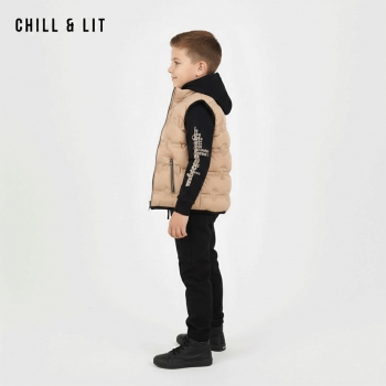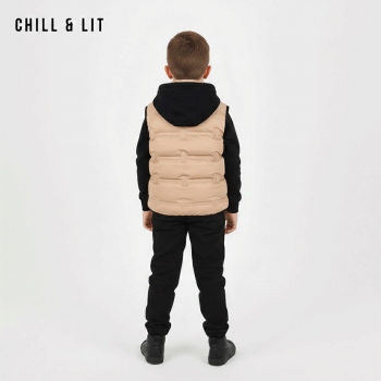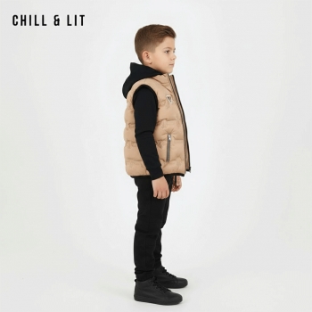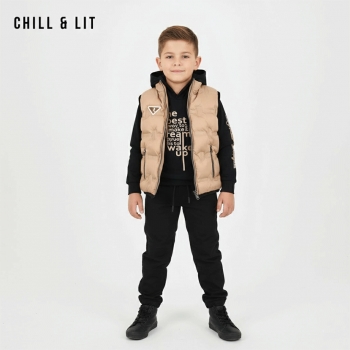Ensemble Garçonnet 3 Pcs Doudoune sans Manches avec deux poches à l'avant + Capuche + Pantalon . Très Tendances . L'ensemble sur La Photo est La taille 4ans.