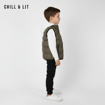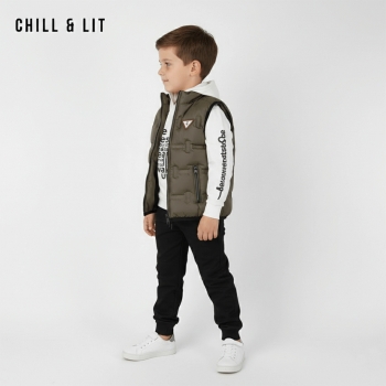 Ensemble Garçonnet 3 Pcs Doudoune sans Manches avec deux poches à l'avant + Capuche + Pantalon . Très Tendances . L'ensemble sur La Photo est La taille 4ans.