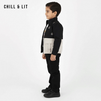 Ensemble Garçonnet 3 Pcs Veste avec deux poches à l'avant + Pull à Manches Longues  + Pantalon . Très Tendances . L'ensemble sur La Photo est La taille 1 an.