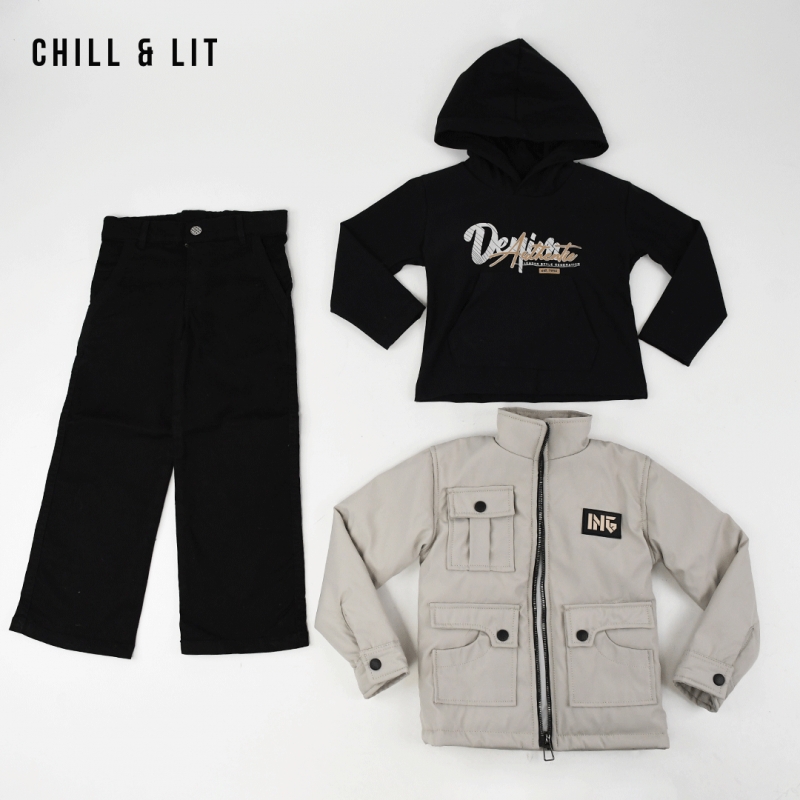 Ensemble Garçonnet 3 Pcs Veste + Sweat à Capuche à Manches Longues + Pantalon en Jean en Ligne sur Chill&Lit. L'ensemble sur La Photo est La taille 4Ans.