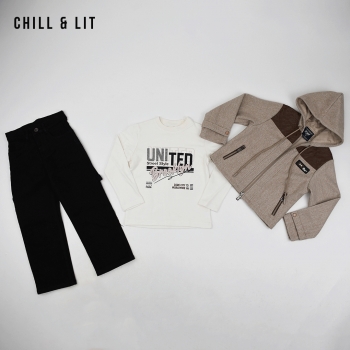 Ensemble Garçonnet 3 Pcs Veste + Pull à Manches Longues + Pantalon . Très Tendances . L'ensemble sur La Photo est La taille 4Ans.