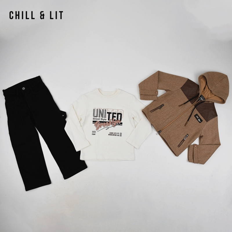 Ensemble Garçonnet 3 Pcs Veste + Pull à Manches Longues + Pantalon . Très Tendances . L'ensemble sur La Photo est La taille 4Ans.