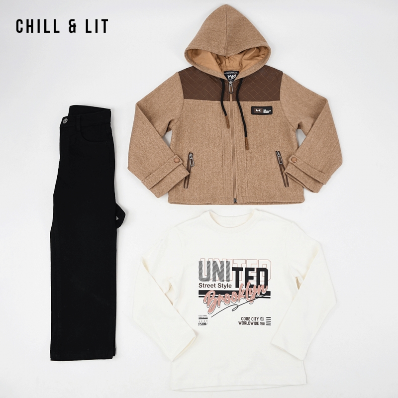 Ensemble Garçonnet 3 Pcs Veste + Pull à Manches Longues + Pantalon . Très Tendances . L'ensemble sur La Photo est La taille 4Ans.