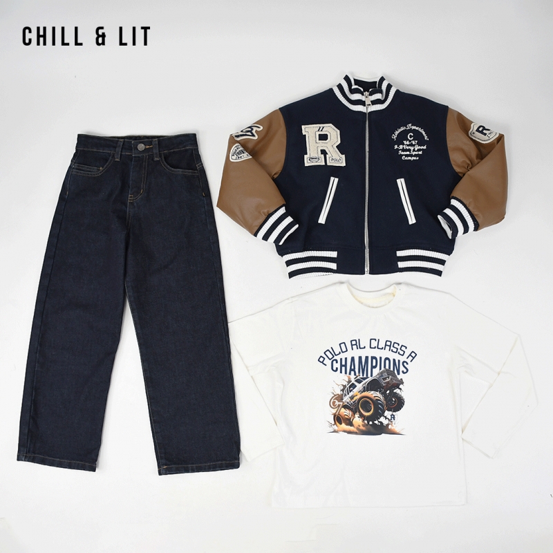 Ensemble Garçonnet 3 Pcs Veste Manches en Cuir + Pull à Manches Longues + Pantalon en Jean Hyper Tendance en ce Moment. L'ensemble sur La Photo est La taille 6Ans.