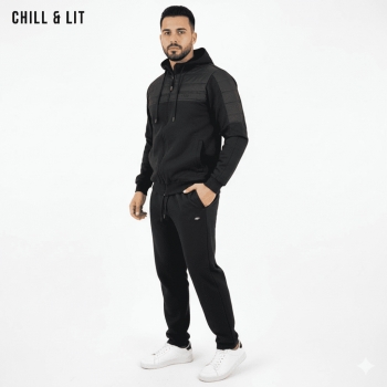 Survêtement Homme Gilet à Capuche + Pantalon Large . Le mannequin porte la taille XL .