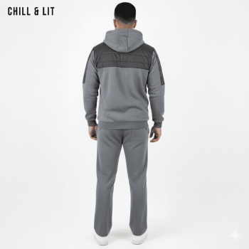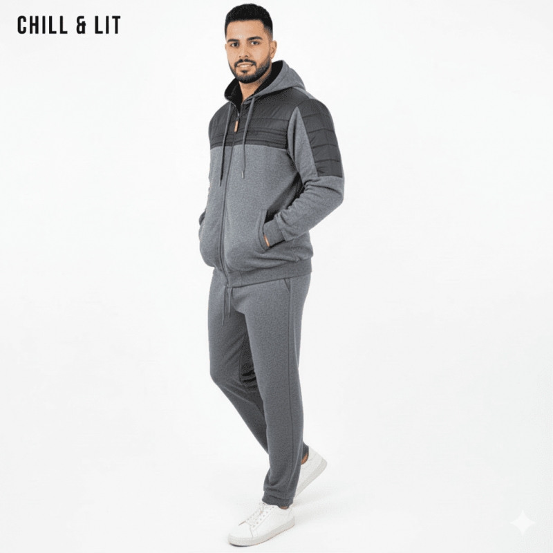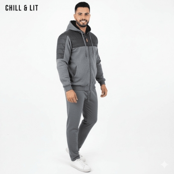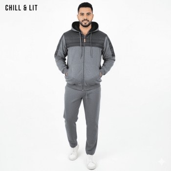 Survêtement Homme Gilet à Capuche + Pantalon Large . Le mannequin porte la taille XL .