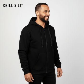 Gilet Homme Avec Capuche en Molleton Gratté, Fermeture Glissière Et deux Poches à L'avant . Hyper tendance cet Hiver. Le mannequin porte la taille M.