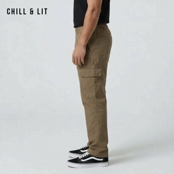 Pantalon Cargo Homme Confortable, Pratique et Facile à porter au Quotidien. Avec Ses Poches Latérales et son Style Moderne Hyper Tendances. Le mannequin porte la taille 30US (40EUR) .