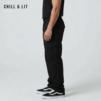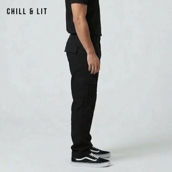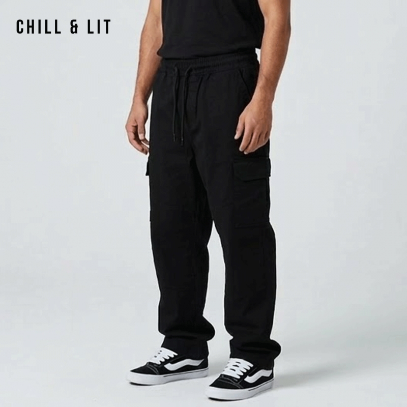 Pantalon Cargo Homme Confortable, Pratique et Facile à porter au Quotidien. Avec Ses Poches Latérales et son Style Moderne Hyper Tendances. Le mannequin porte la taille 30US (40EUR) .