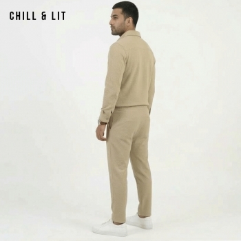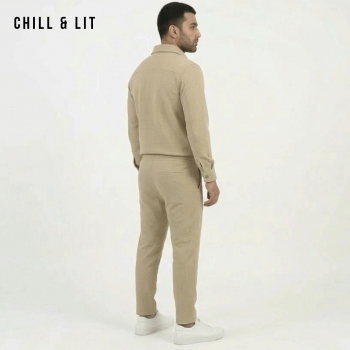 Ensemble pour Homme Composé d’une Chemise élégante et d’un Pantalon Assorti. Un Style Moderne et Confortable. Le Mannequin Porte la Taille S.
