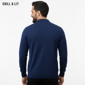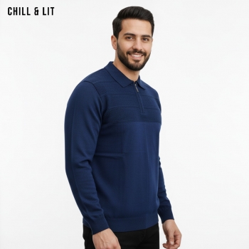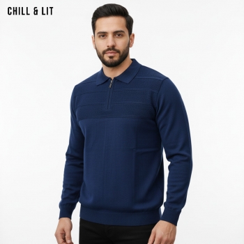 Pull Homme, Col Chemise avec Fermeture Glissière Hyper tendance cet Hiver . Le mannequin porte la taille XL .