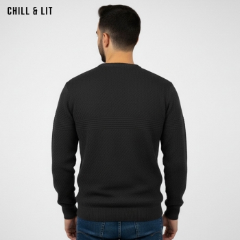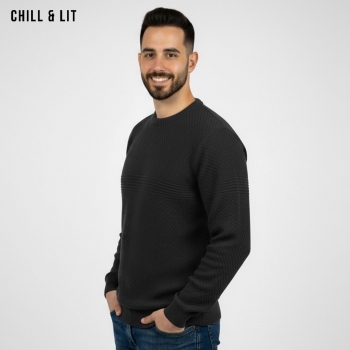 Pull Homme, avec Col Rond Hyper tendance cet Hiver . Le mannequin porte la taille XL .