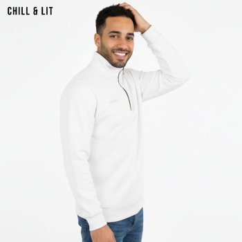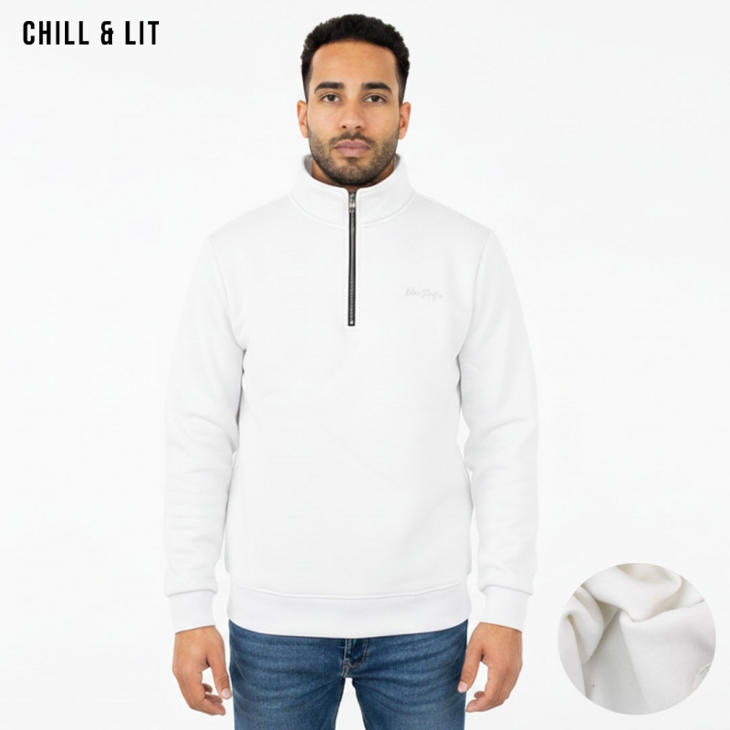 Pull Homme en Molleton Gratté, Col avec Fermeture Glissière. Hyper tendance cet  Hiver . Le mannequin porte la taille xl .