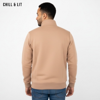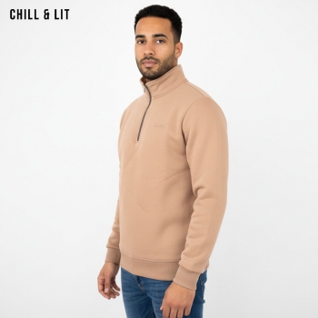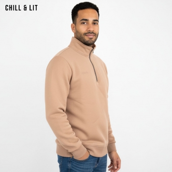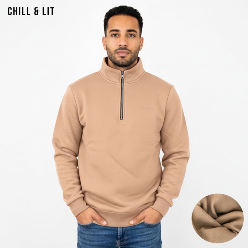 Pull Homme en Molleton Gratté, Col avec Fermeture Glissière. Hyper tendance cet Hiver . Le mannequin porte la taille xl .