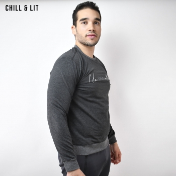 un Sweatshirt Homme Graphique Simple Hyper tendance cet Automne Hiver . Le mannequin porte la taille L .Le Mannequin Mesure:1m93