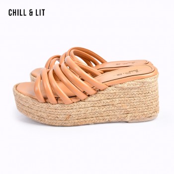 Mules Femme à Brides Multiples Compensées Halfa Bout Carré Hyper Tendances en ce Moment. Hauteur du Talon : 9cm. Pointure sur la Photo:39