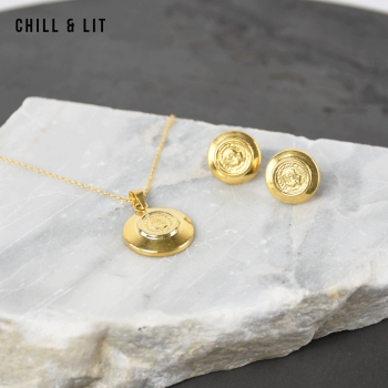 Parure Lyra, Composée d’un Collier et de Boucles d’oreilles en Argent 925 à finition Dorée. Élégante et Facile à porter, elle Apporte une touche lumineuse à toutes les tenues, au quotidien comme lors des occasions spéciales.