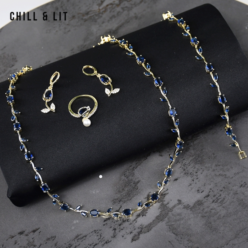 Parure Collier + Bracelet + Boucle d'Oreilles + Bague