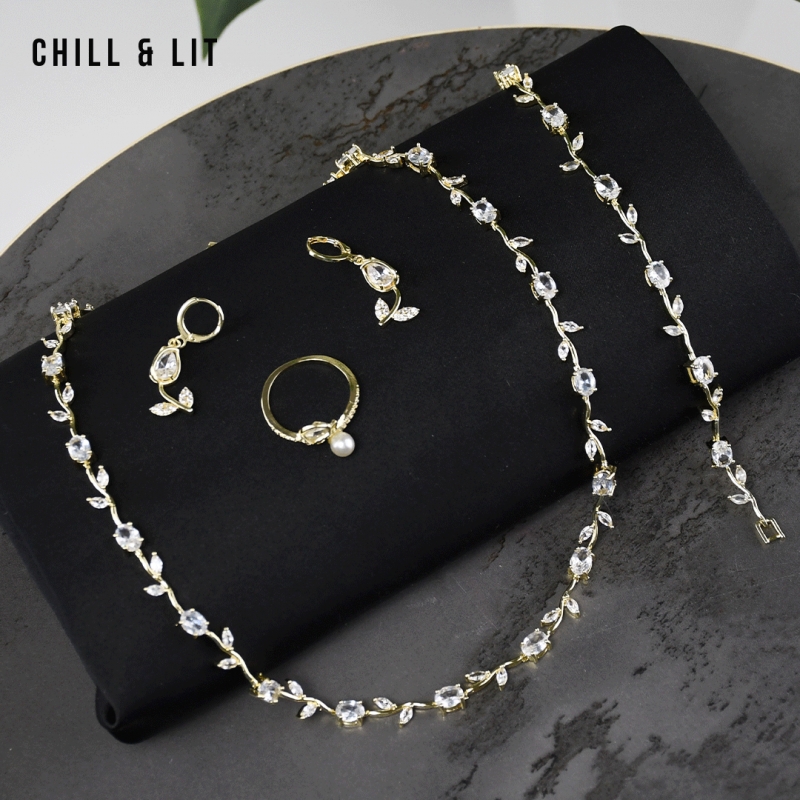 Parure Collier + Bracelet + Boucle d'Oreilles + Bague