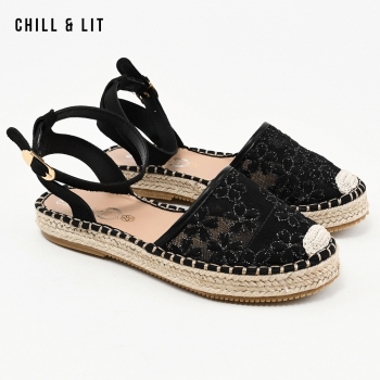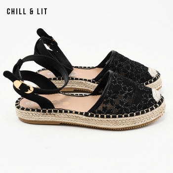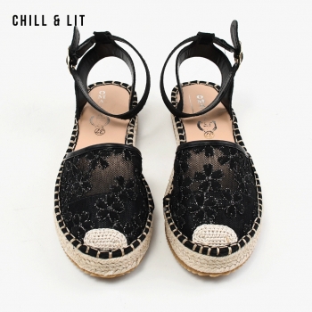 Sandales Plateforme Halfa pour Femme Avec Maille Transparente bordée, Bride Réglable, Bout Rond, Hauteur Semelle 3 cm. Hyper Tendances en ce Moment. Pointure sur la Photo:37.