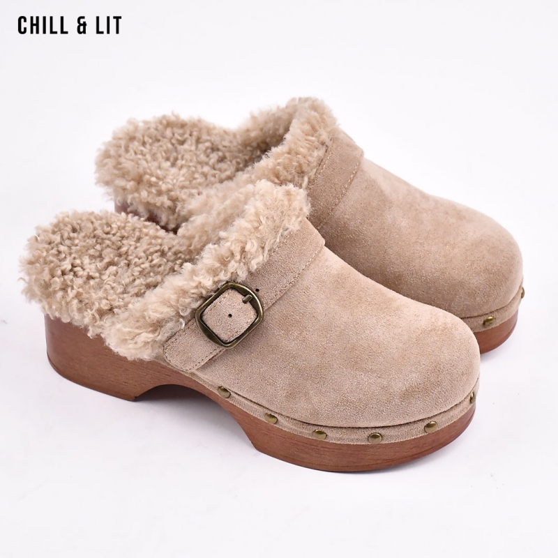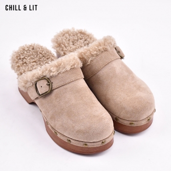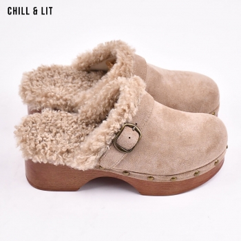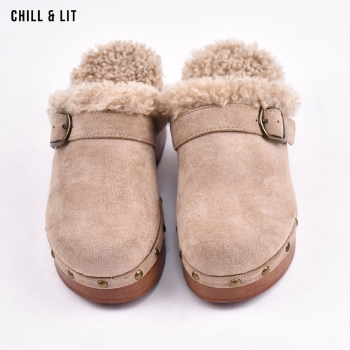 Sabot Femme en Daim Hauteur 6 Cm avec Doublure en Tissu Bouclette Super Chaude et Doux  Super Tendances cette Saison. Pointure sur la Photo:37.