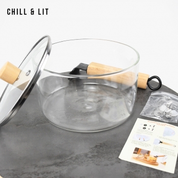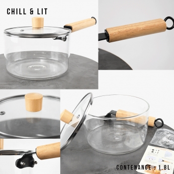 Casserole en Verre 1.8L avec Couvercle, Permet de Cuisiner tout en Surveillant Facilement la cuisson grâce à sa Transparence. Résistante à la Chaleur et Facile à Nettoyer, elle n’absorbe ni odeurs ni saveurs.