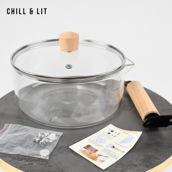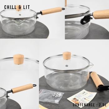 Casserole en Verre 2.5L avec Couvercle, Permet de Cuisiner tout en Surveillant Facilement la cuisson grâce à sa Transparence. Résistante à la Chaleur et Facile à Nettoyer, elle n’absorbe ni odeurs ni saveurs. Casserole Modulable.