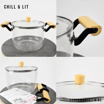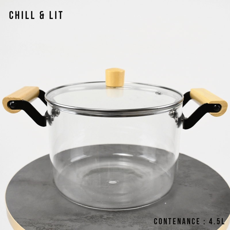 Casserole en Verre 4.5L avec Couvercle, Permet de Cuisiner tout en Surveillant Facilement la cuisson grâce à sa Transparence. Résistante à la Chaleur et Facile à Nettoyer, elle n’absorbe ni odeurs ni saveurs. Casserole Modulable.